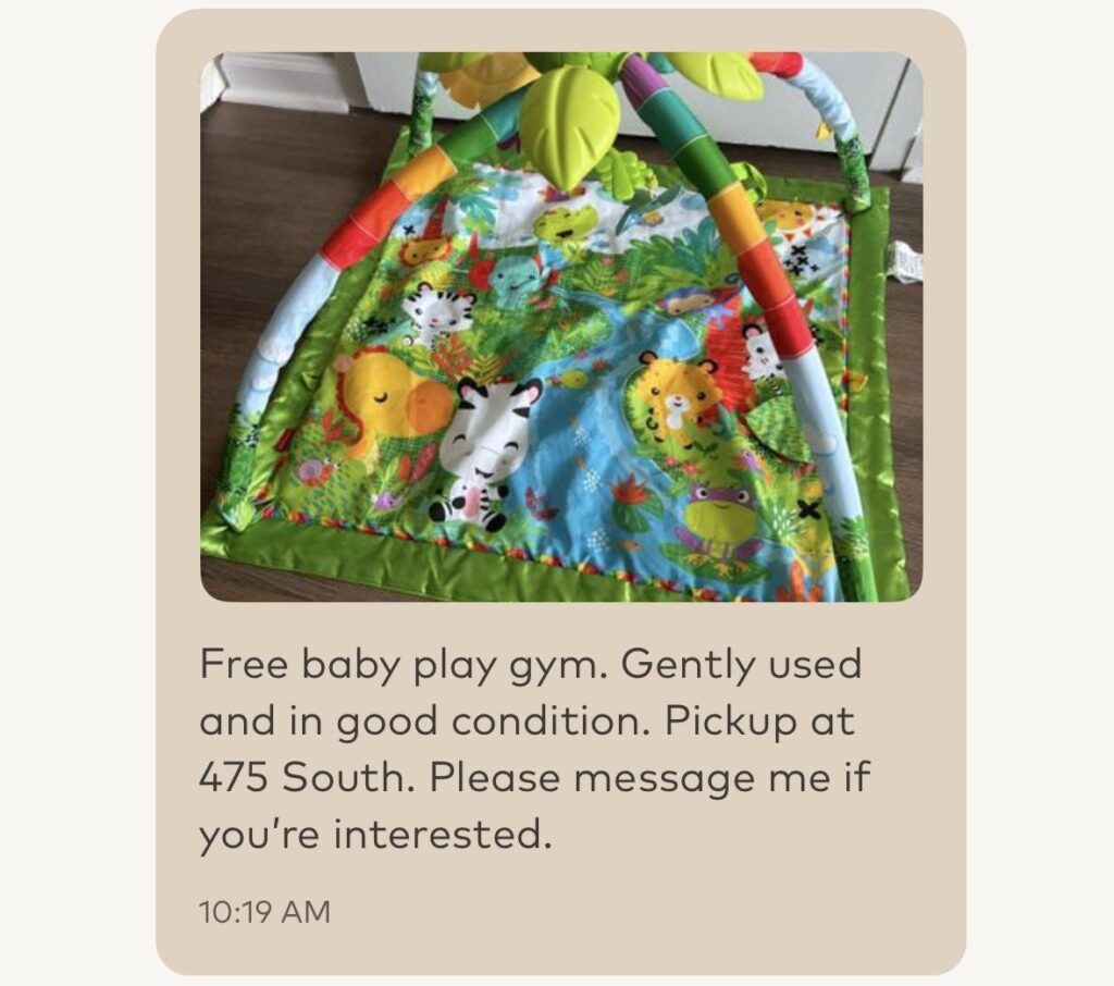 アメリカでは、使わなくなった物を気軽に譲り合う文化が根付いている。私が住むアパートではマーケットプレイスのプラットフォームがあり、住民同士が不要品を投稿し、譲りたい人と欲しい人が直接やりとりできる仕組みになっている。実際に私も、ベビーカーやベビーベッド、ミルクなどをこのアプリを通じて譲り受けたり、逆にサイズアウトしたベビー服を無料で譲ったりした。物のやり取りにとどまらず、子育て中の母親同士がつながるきっかけにもなっており、私自身もよく利用している。またFacebook MarketplaceやNextdoorなどのオンライン掲示板では、「Free pickup(無料で持って行ってOK)」という投稿も多く見られる。使用期間の短いベビー用品を必要な人へ渡すことは、ごく自然なこととして受け入れられているのだ。ニューヨークではオンライン上だけでなく、家の前に不要になった家具や日用品を置き「Free」と書いた紙を添えておく「カーブアラート(Curb Alert)」という光景もよく見られる。法的には自治体ごとに規制が異なるが、ニューヨーク市では歩道の通行を妨げない範囲であれば許容されており、通りがかりの人が自由に持ち帰ることができる。こうした慣習は、リユースを通じてモノを循環させ、地域で支え合うアメリカならではの文化として根づいている。