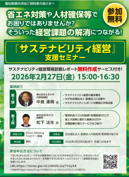 株式会社福祉医療共済会のセミナーに弊社代表が登壇します。
